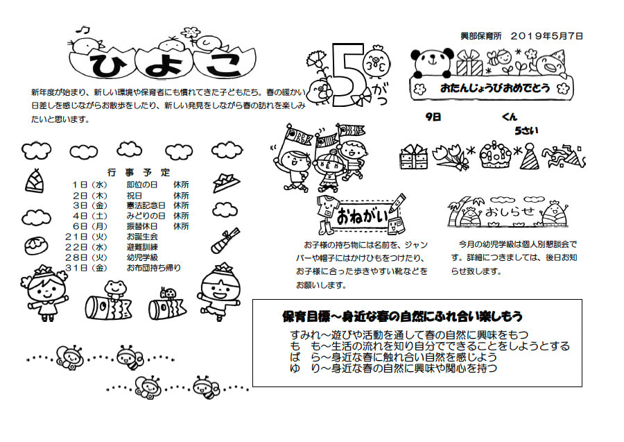 新年度が始まり、新しい環境や保育者にも慣れてきた子どもたち。
