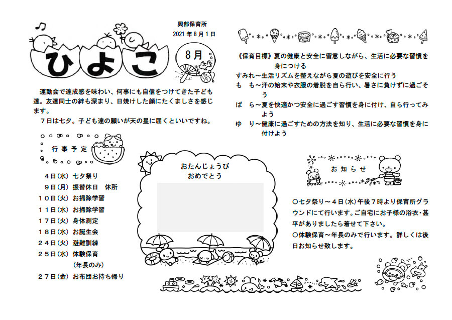 7日は七夕。子ども達の願いが天の星に届くといいですね。