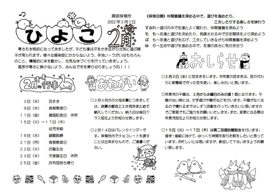 寒さも本格的になってきましたが、子ども達は汗をかきながら元気に遊ぶ様子が見られます。様々な感染症にかからないよう、手洗い・うがいはもちろんのこと、積極的に体を動かし、元気な体づくりを行っていきましょう。風邪や寒さに負けないよう、みんなで冬を乗り切りましょうね!!!