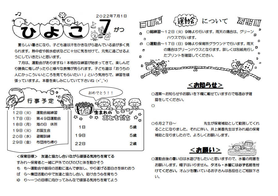 熱中症や脱水症状などに十分に気を付けて、元気に過ごせるようにしていきたいと思います。