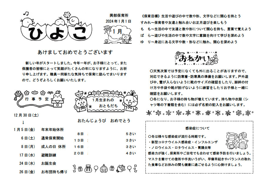 今年一年が、お子様にとって、また保護者の皆様にとって笑顔がたくさんの年になりますように、お祈り申し上げます。